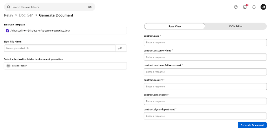 - Navigate to Relay > Doc Gen