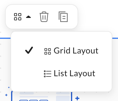 セクションを選択し、レイアウトアイコンをクリックした後、[グリッドレイアウト] または [リストレイアウト] を選択します。
