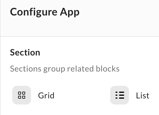 [アプリを構成] の [セクション] 領域で [グリッド] または [リスト] を選択します。